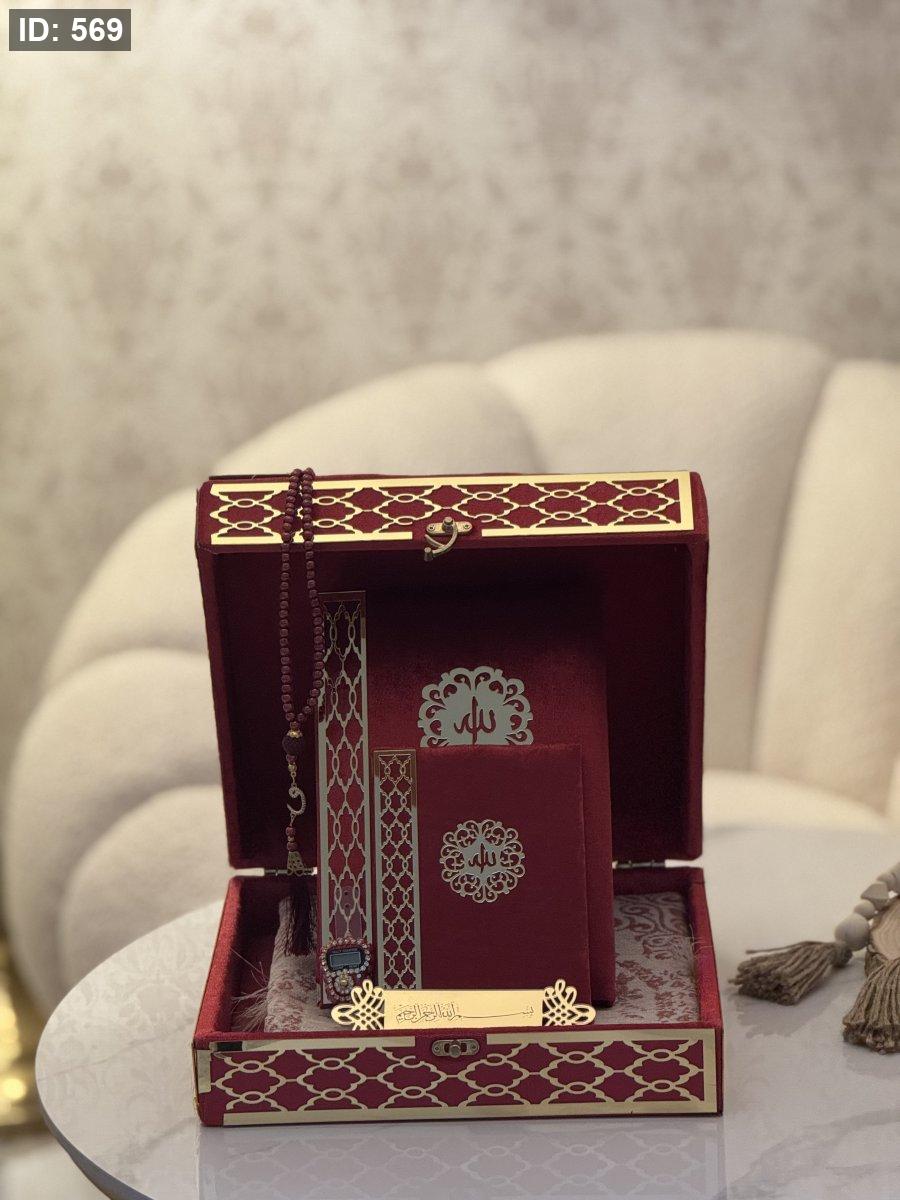 مكون من بوكس +قران +مسبحة الكتروني +مصلية+ مسبحة عادية +فاصل للقران مكتوب عليه بسم الله الرحمٰن الرحيم