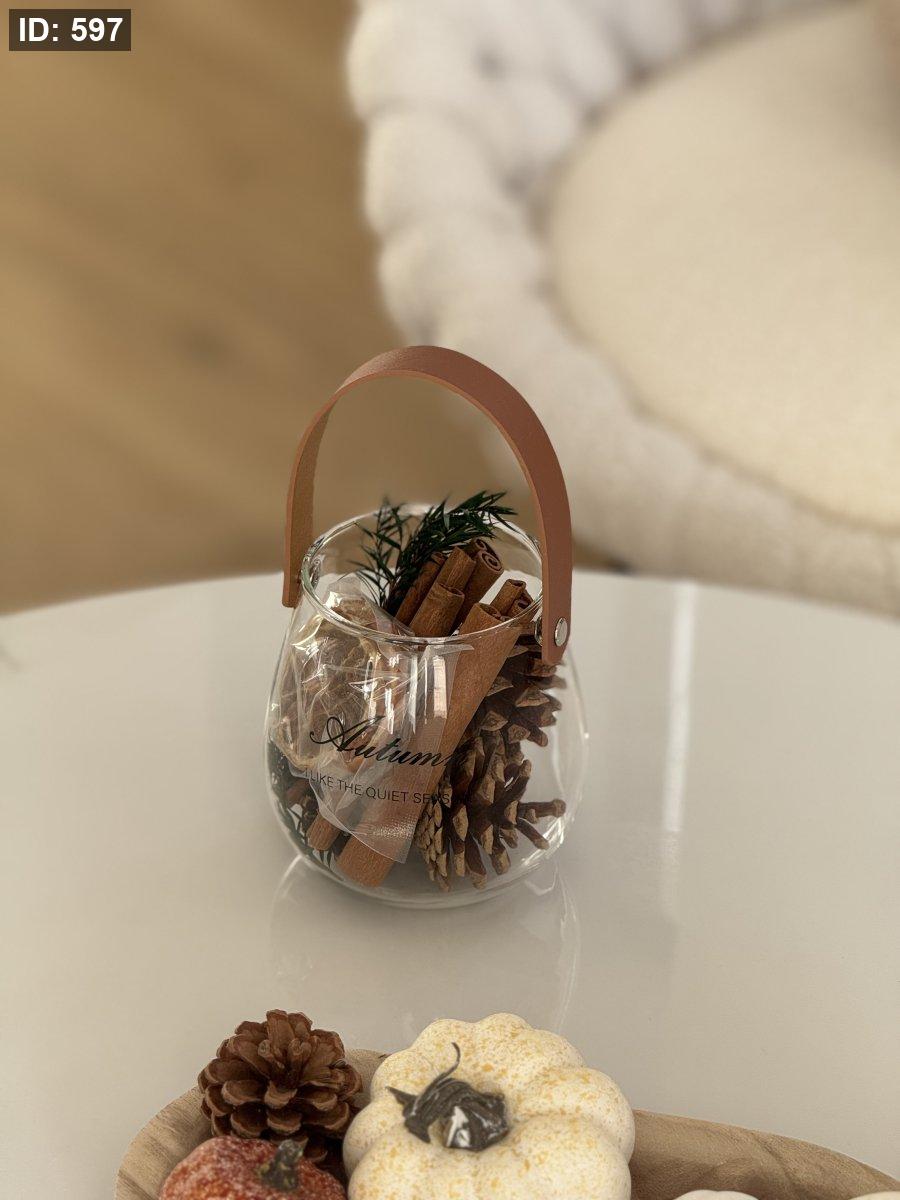 الفازة زجاج شفاف مع يد جلد مع كل الي جواها