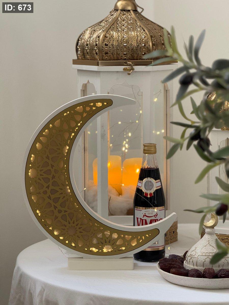 هلال خشبي مضيء ذهبي وأبيض