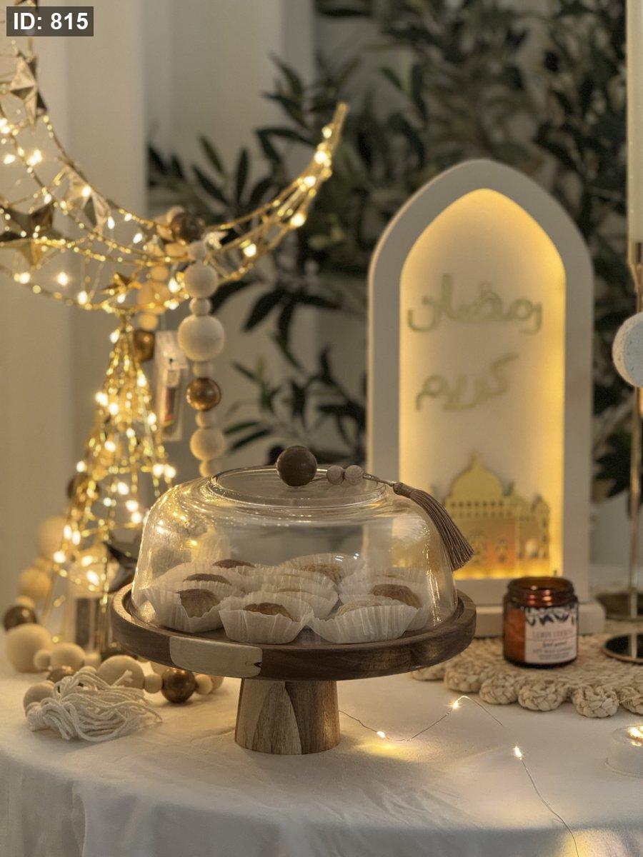 مضيفة خشب مع ستاند وغطا زجاج 🌙