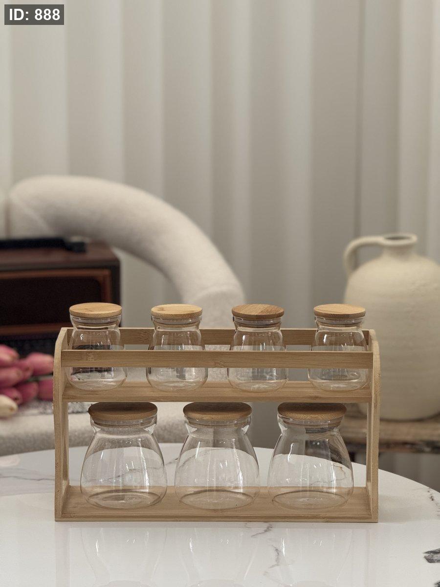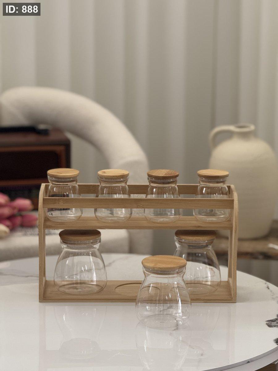 منظم مطبخ مكون من 7 علب تنظيم والستاند الخشب