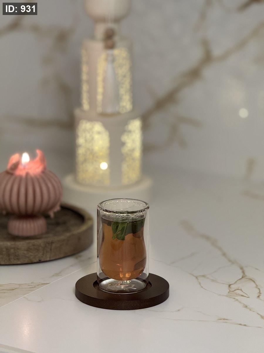 طقم ٦ كاسات شاي دبل جلاس مع٦ صحون خشب