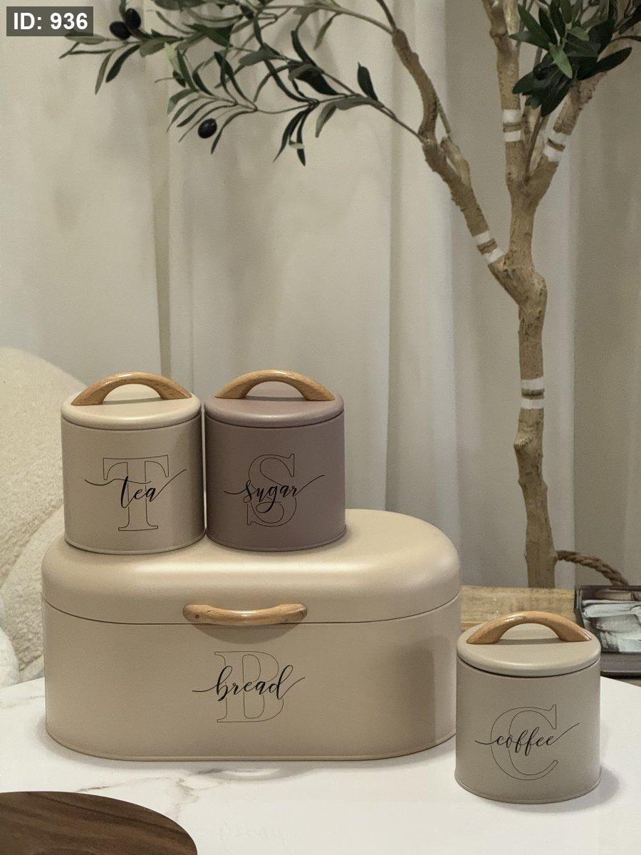 طقم تنظم للمطبخ مكون من أربع قطع (علبة الخبز وطقم سكريات )